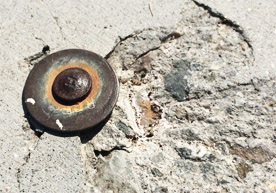 The hole for the lead should be a minimum 3/4" deep and 1/2" diameter. The location should be slightly recessed to prevent the Tag from being scraped off. Care should be taken to prevent damage and fracturing to the concrete surface. Inspection staff prior to releasing the improvement performance bond may require replacement of damaged curb.
