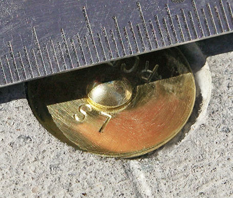 "The hole for the lead should be a minimum 3/4" deep and 1/2" diameter. The location should be slightly recessed to prevent the Tag from being scraped off. Care should be taken to prevent damage and fracturing to the concrete surface. Inspection staff prior to releasing the improvement performance bond may require replacement of damaged curb."