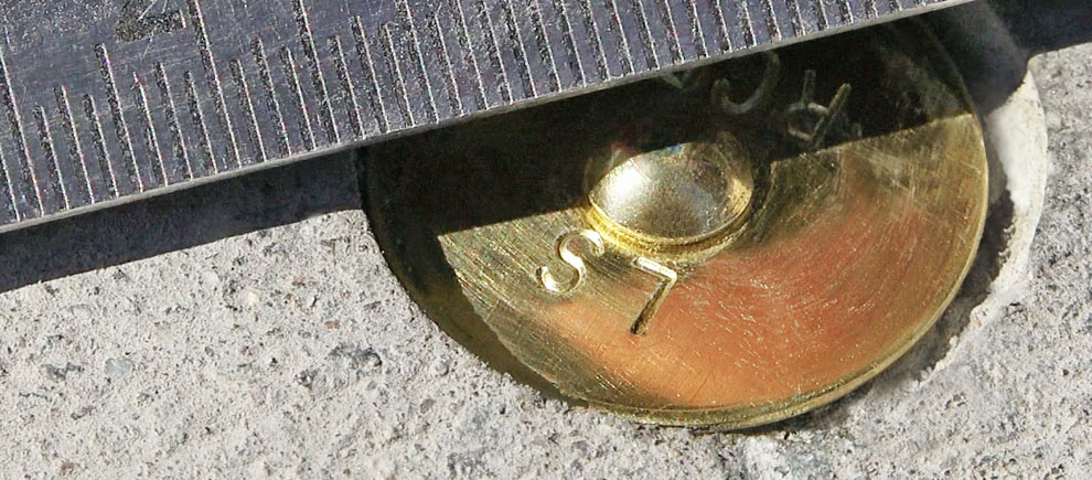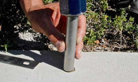 Maintaining 90° angle, drill countersunk hole over your monument mark.