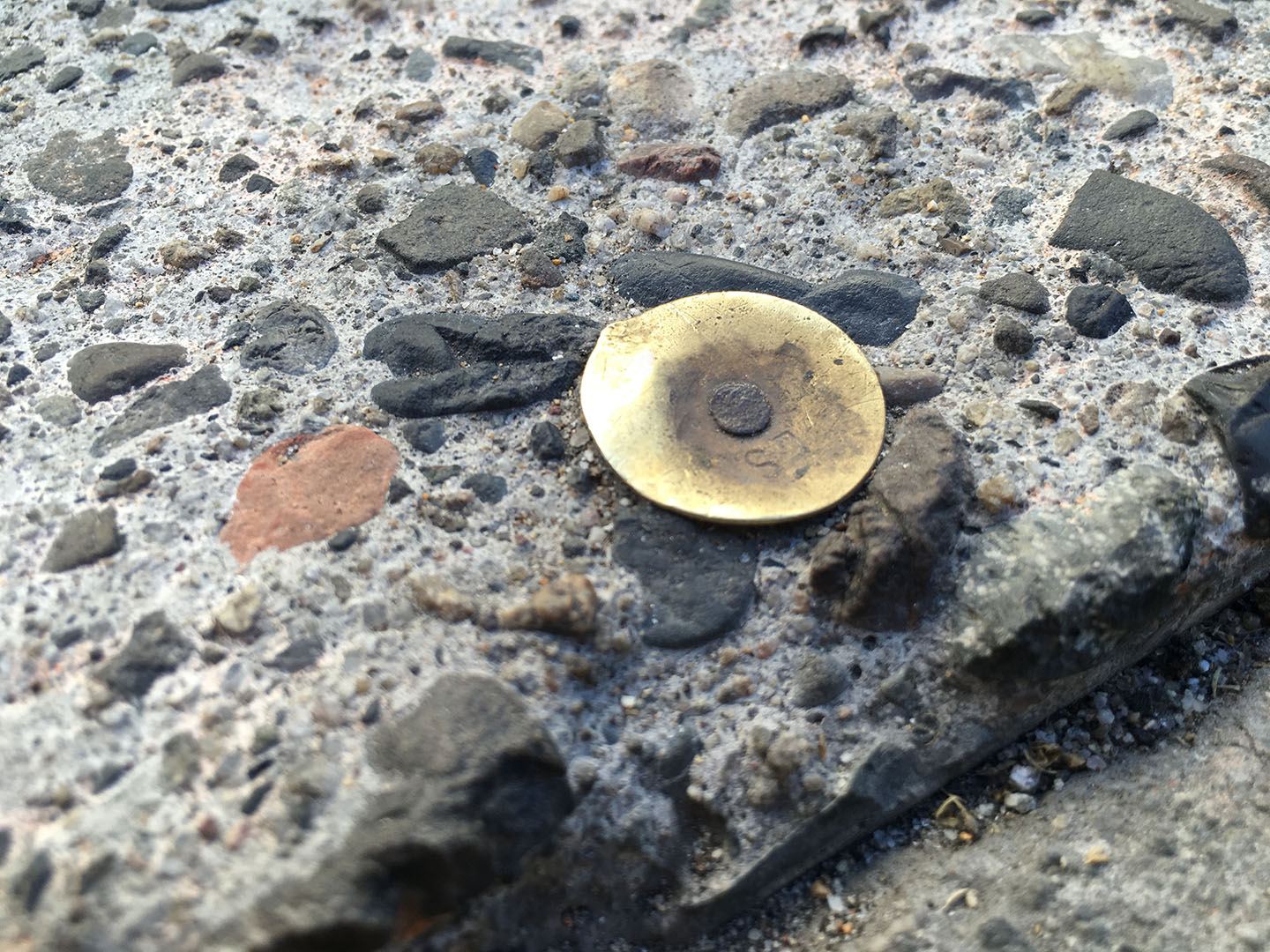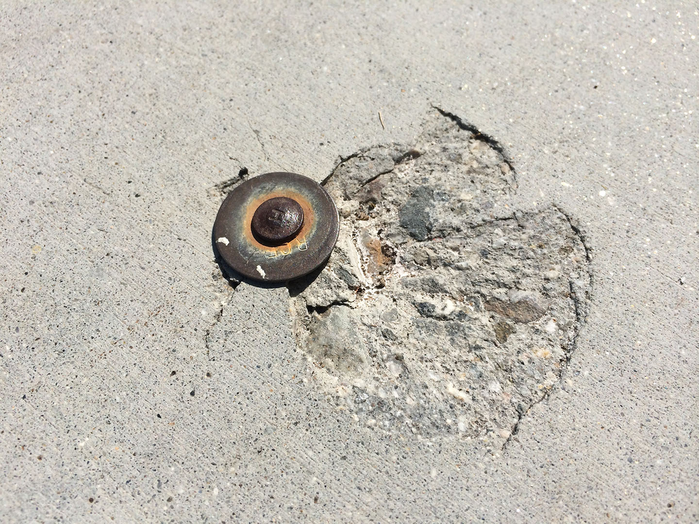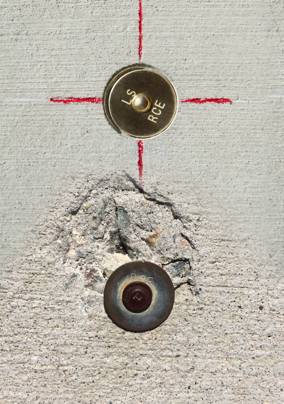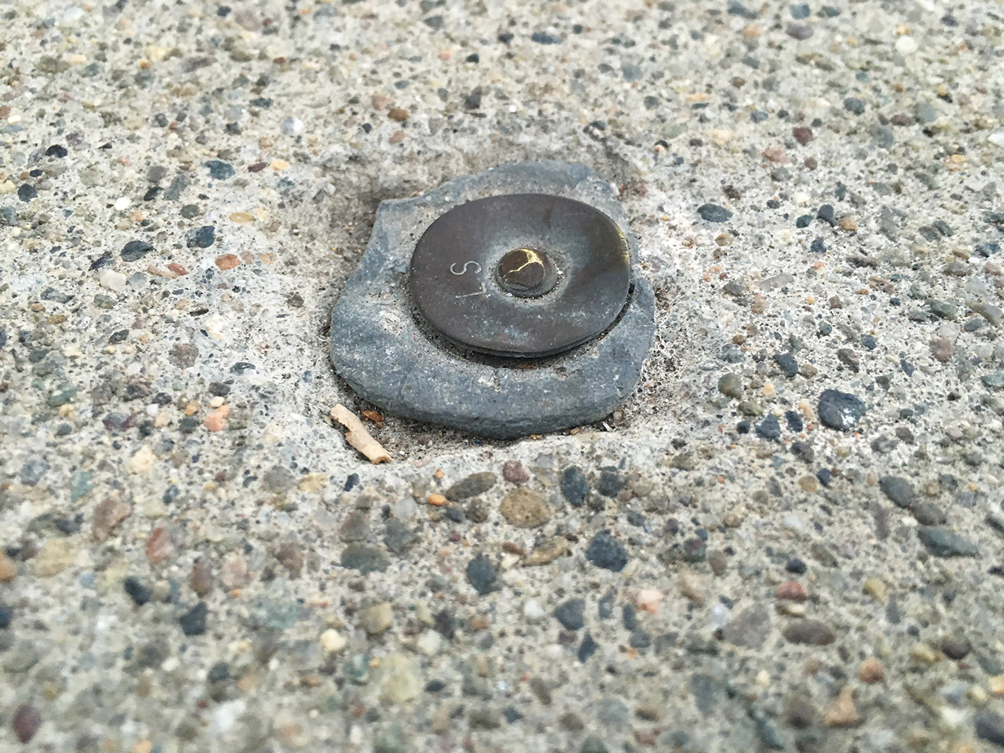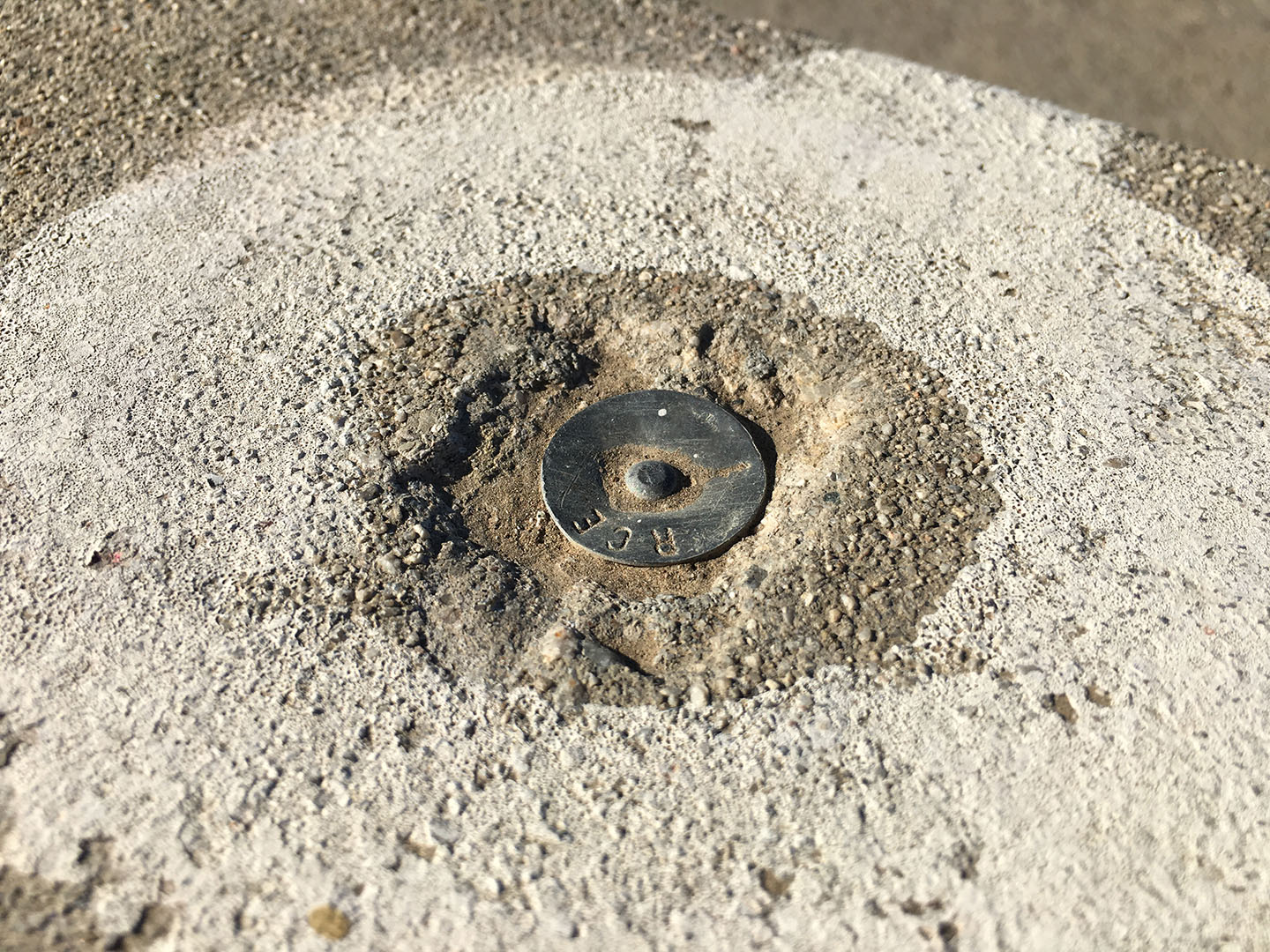 "The location should be pre-drilled for a countersink to be slightly recessed and prevent the Tag from being scraped off. Care should be taken to prevent damage and fracturing to the concrete surface. Inspection staff prior to releasing the improvement performance bond may require replacement of damaged curb."