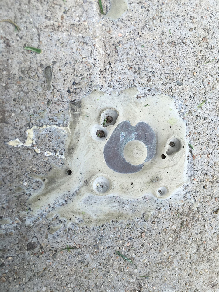 "The hole for the lead should be a minimum 3/4" deep and 1/2" diameter. The location should be slightly recessed to prevent the Tag from being scraped off. Care should be taken to prevent damage and fracturing to the concrete surface. Inspection staff prior to releasing the improvement performance bond may require replacement of damaged curb."