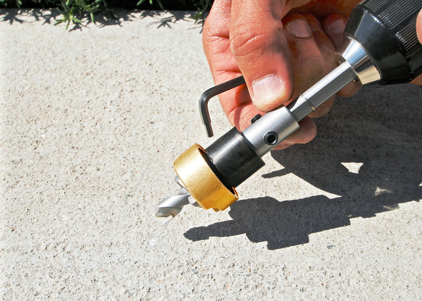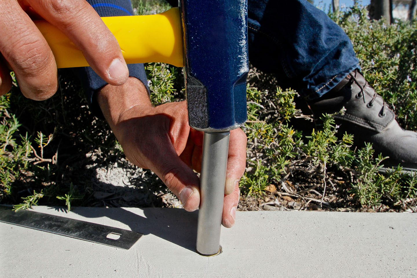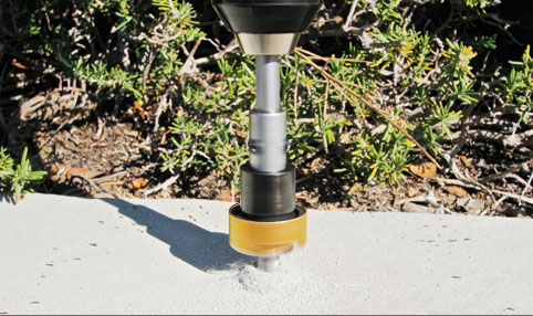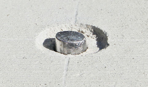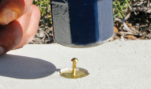 Maintaining 90° angle, drill countersunk hole over your monument mark.
