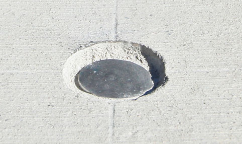 Place O-TAGS® Pre-Cut Lead Anchor in countersunk hole. Using Compression Bar and hammer, expand Lead Anchor inside hole.